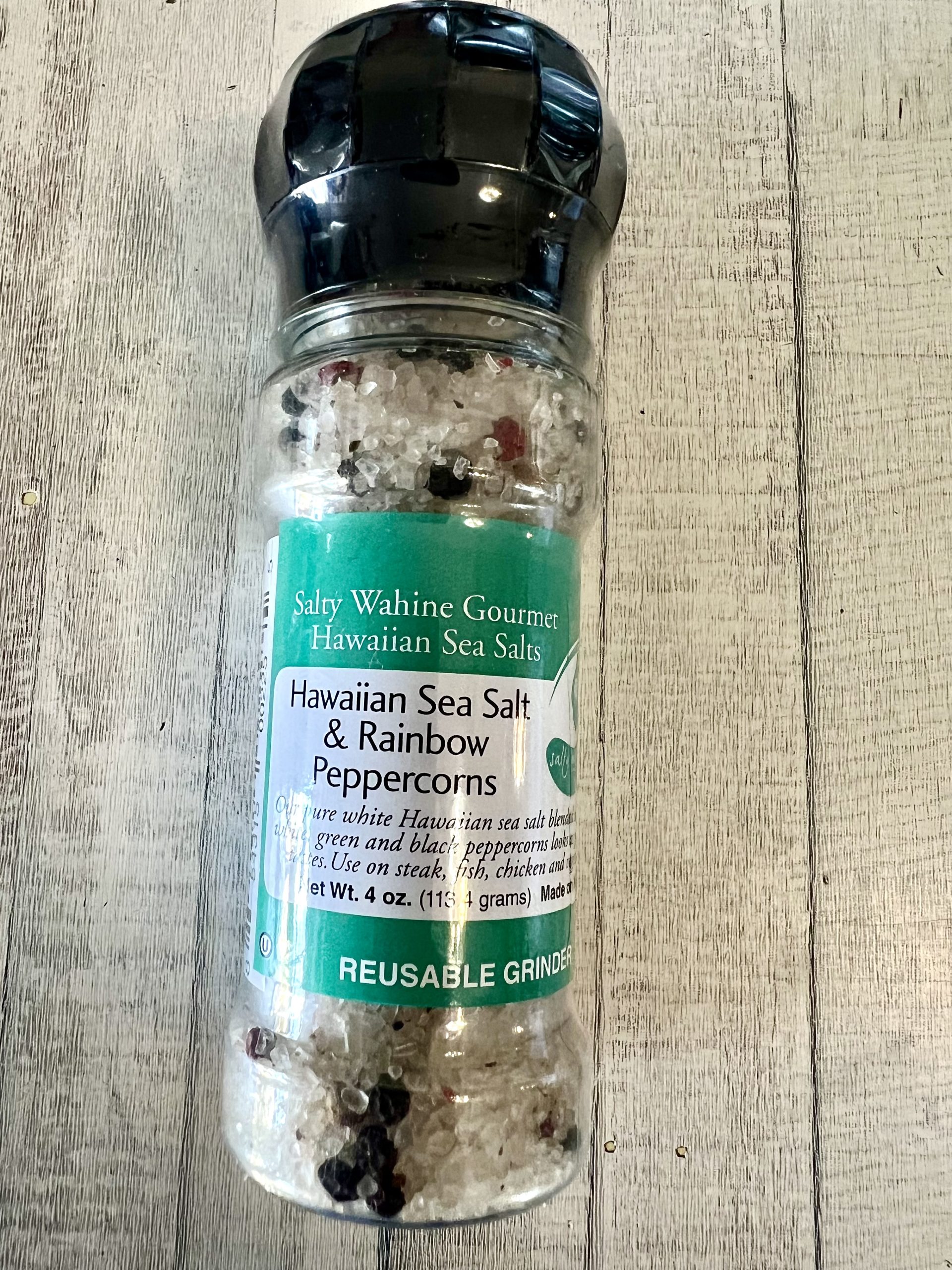 Salty Wahine Hawaiian White Salt w/Rainbow Pepper 4 oz Grinder